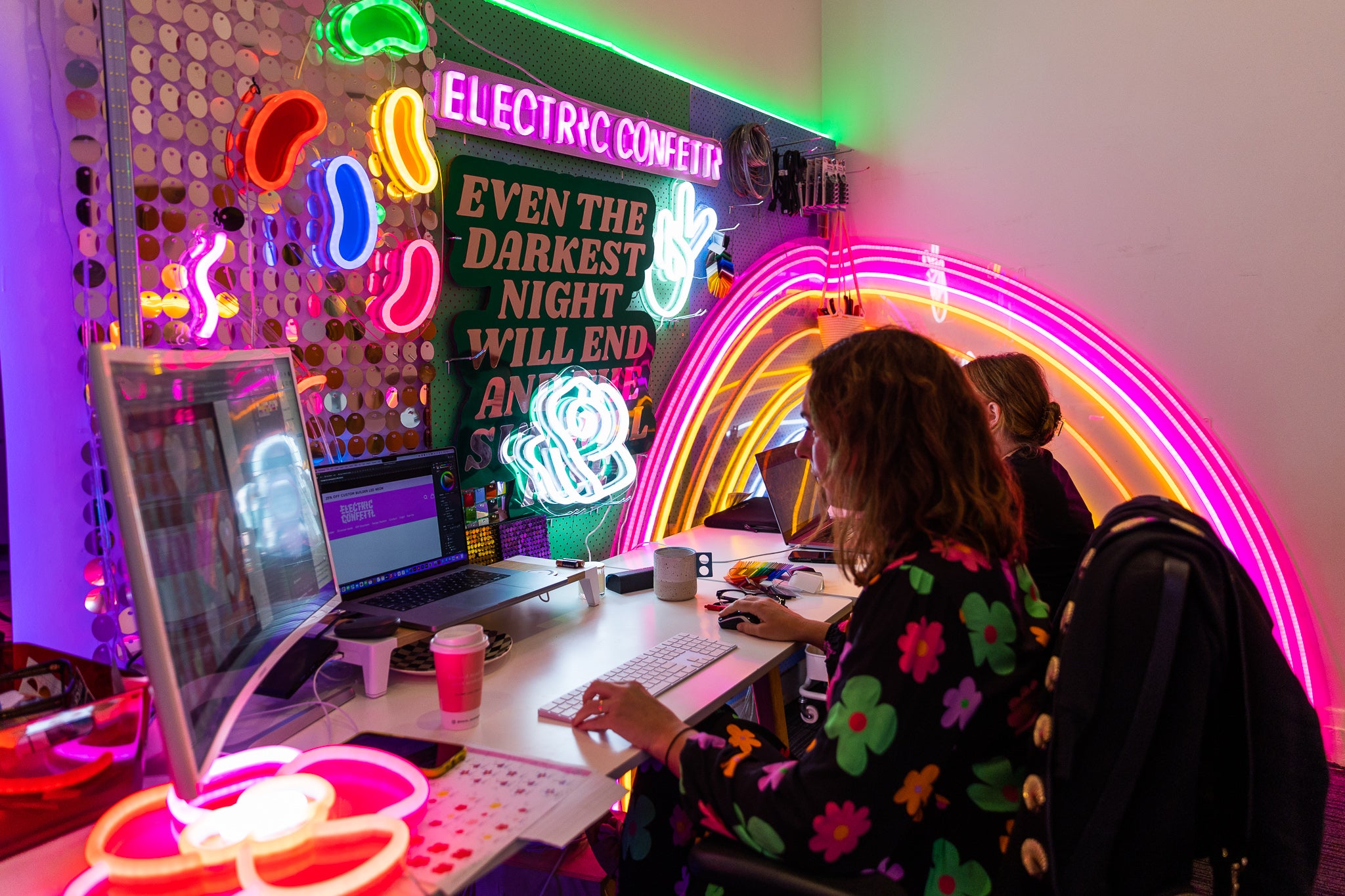 At Electric Confetti, we’ve evolved beyond just making neon signs—we design and install immersive experiences that transform spaces. Our light and shimmer installations are crafted to captivate, creating moments that inspire joy and leave a lasting impact, whether it’s for public spaces, private events, or branded activations.